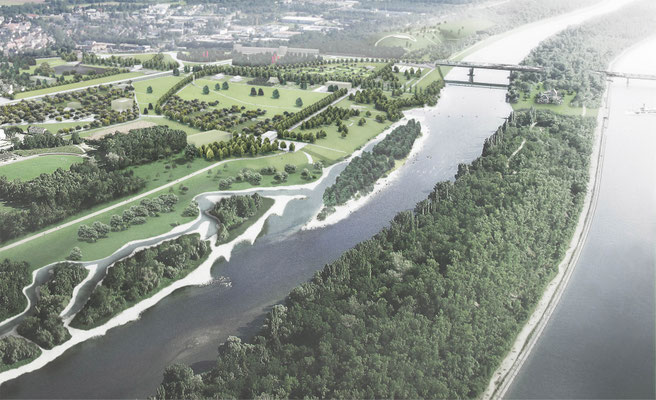 Der Entwurf versucht einerseits die bestehenden Barrieren, so weit dies möglich ist, zu überwinden und andererseits die unterschiedlichen Landschaftsräume in ihren Charakteren zu stärken.